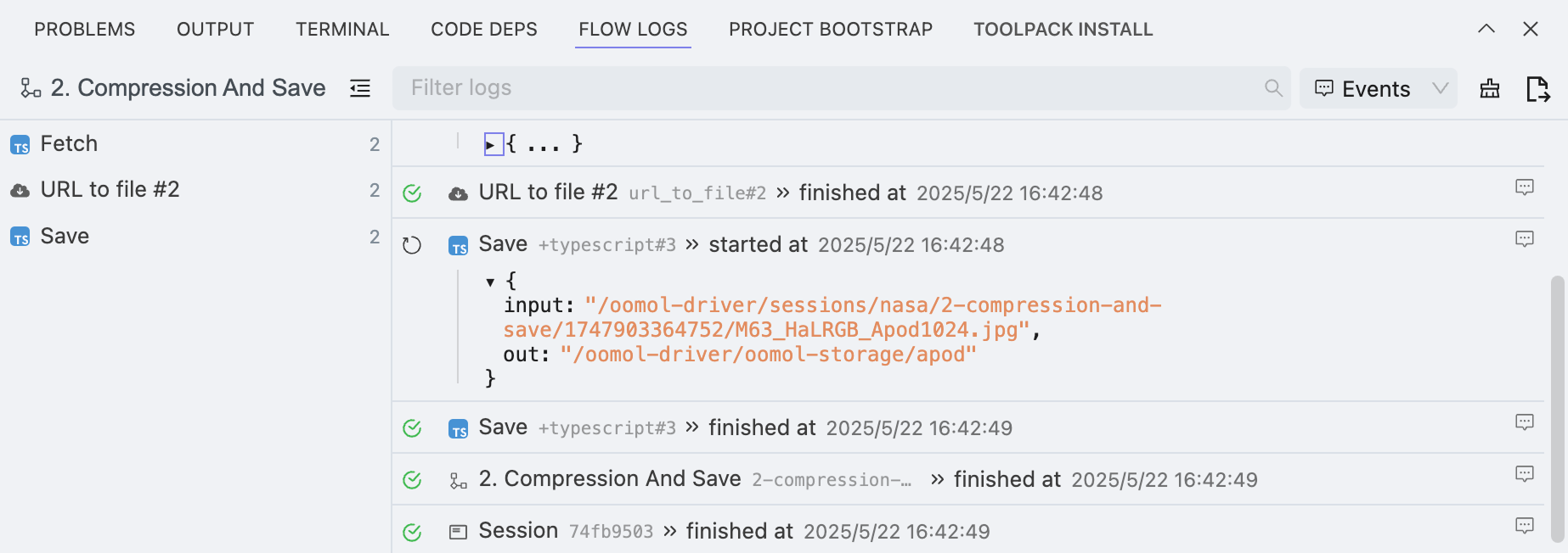 This area will display some log information from OOMOL Studio itself and output logs from plugins. Generally, you do not need to pay attention to this area.