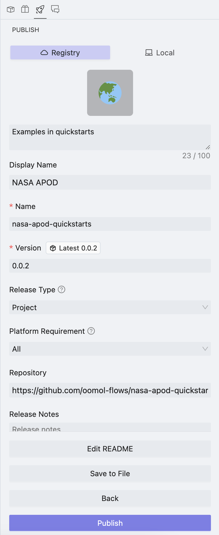 When preparing to publish to the OOMOL Store, you will see many fields to fill out, such as: